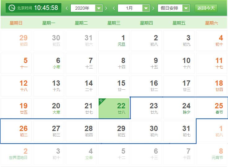 2020年春節(jié)期間,我公司放假時間為2020年1月23日(農歷臘月二十九)至2020年1月31日(農歷正月初七),2020年2月1日(農歷正月初八)開始上班。春節(jié)放假期間,我公司暫停生產和服務工作,如有特殊事務請聯系我公司相關工作人員,帶來不便請您諒解。
