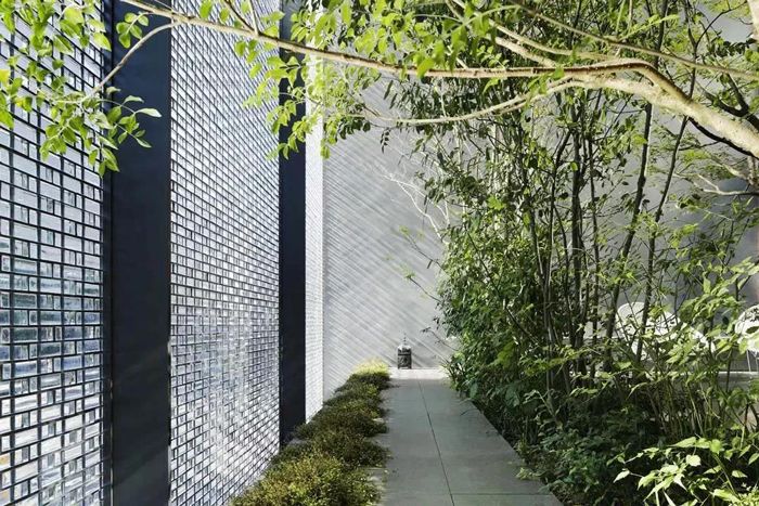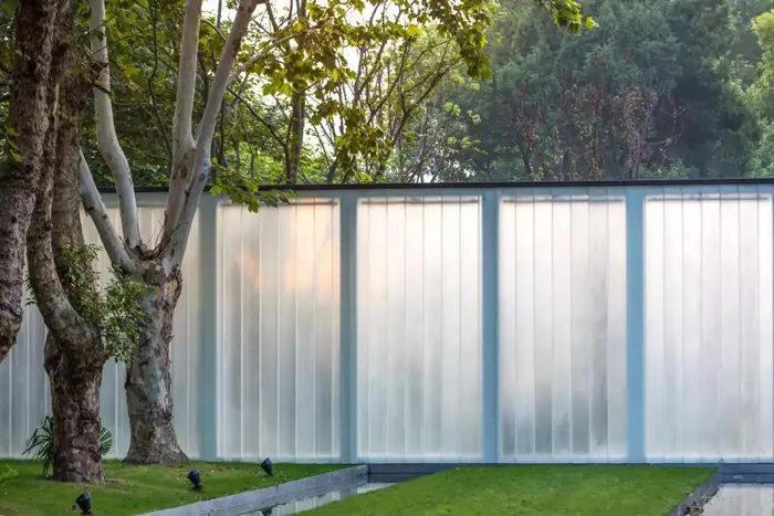 簡(jiǎn)單的垂直長(zhǎng)條紋,延伸并折射被阻擋的物體,給人垂直拉伸的視覺體驗(yàn)。