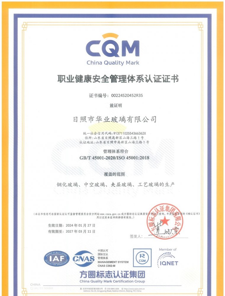 職業(yè)健康安全管理體系認(rèn)證證書