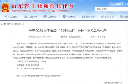 根據(jù)《山東省“專精特新”中小企業(yè)認(rèn)定管理辦法》(魯工信發(fā)〔2020〕7號)、《關(guān)于組織申報2020年度山東省“專精特新”中小企業(yè)和對往年“專精特新”中小企業(yè)進行復(fù)核的通知》等文件精神,省工業(yè)和信息化廳組織開展了2020年度省級“專精特新”中小企業(yè)評選工作。經(jīng)主管部門推薦、專家評審等程序,確定我公司為2020年度省級“專精特新”中小企業(yè)。